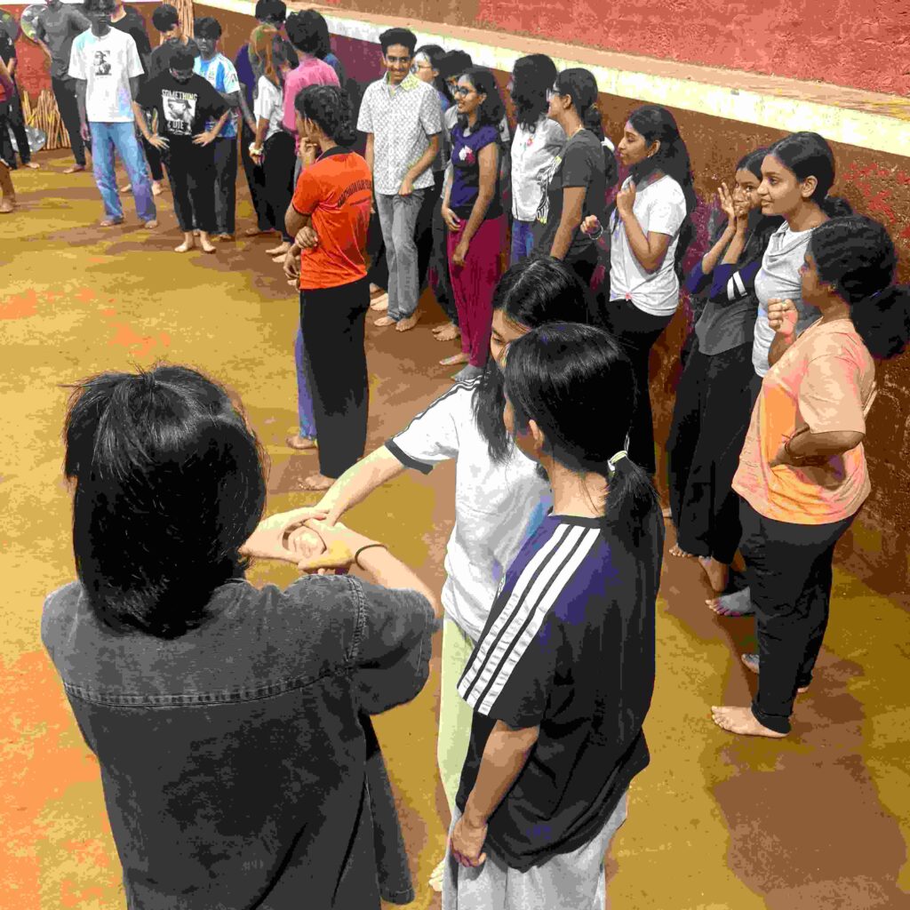- Physical Development: Builds flexibility, strength, coordination, balance, agility, and motor skills through rhythmic exercises like animal-inspired poses (meypayattu) and wooden weapon practice (kolthari). Children gain improved reflexes, cardiovascular health, and overall fitness without equipment.